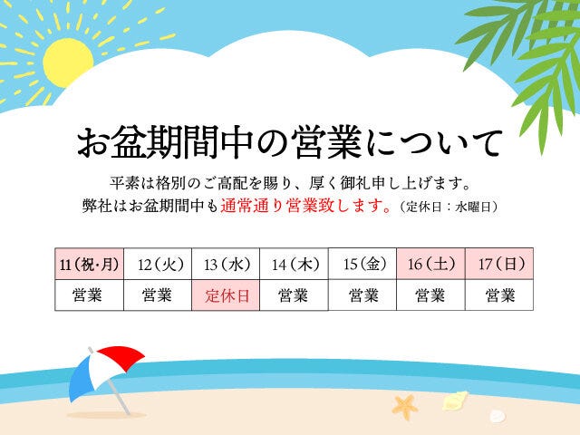 お盆も通常通り営業しております!