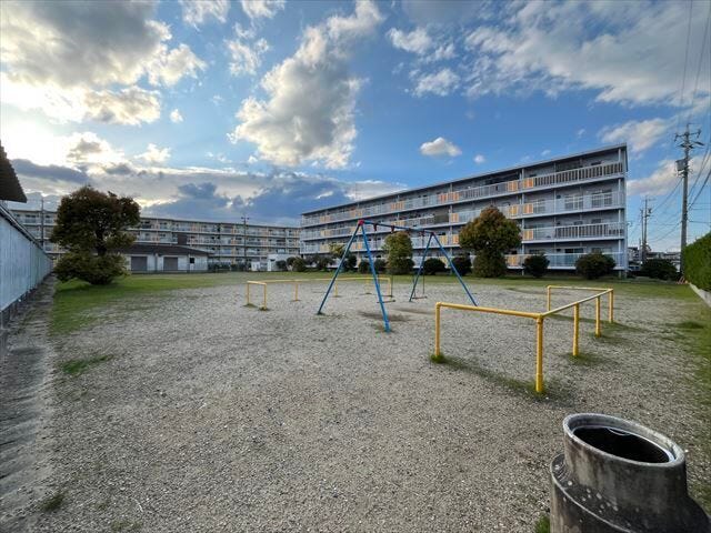 十宮団地幼児公園 【市営団地が並ぶ中心に位置し、集会所が隣接しています。自動販売機もあり、住民の皆の憩いの場になっています。】