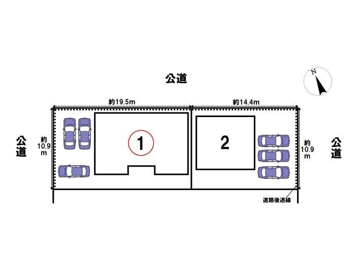 土地面積 実208.57㎡(63.09坪) 接道 北東側(公道)幅 約3.9m 間口 約19.00m