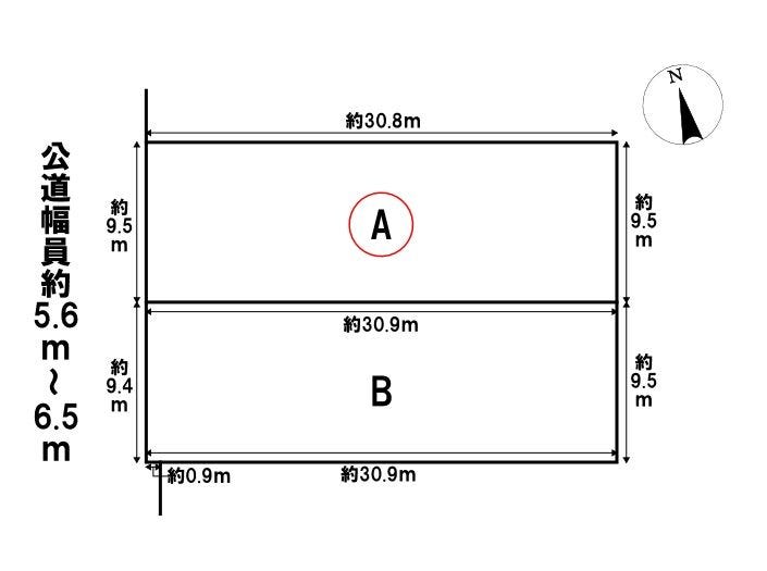 | 土地面積 | 実294.67㎡(89.13坪) | 接道 | 北西側(公道)幅 約5.6m 間口 約9.50m |