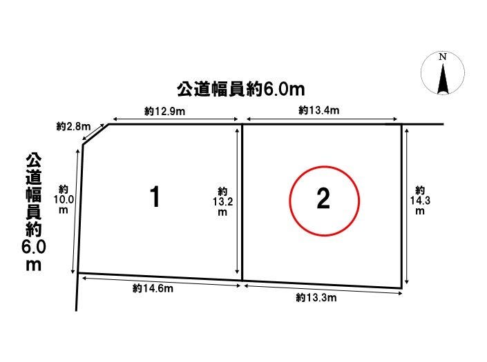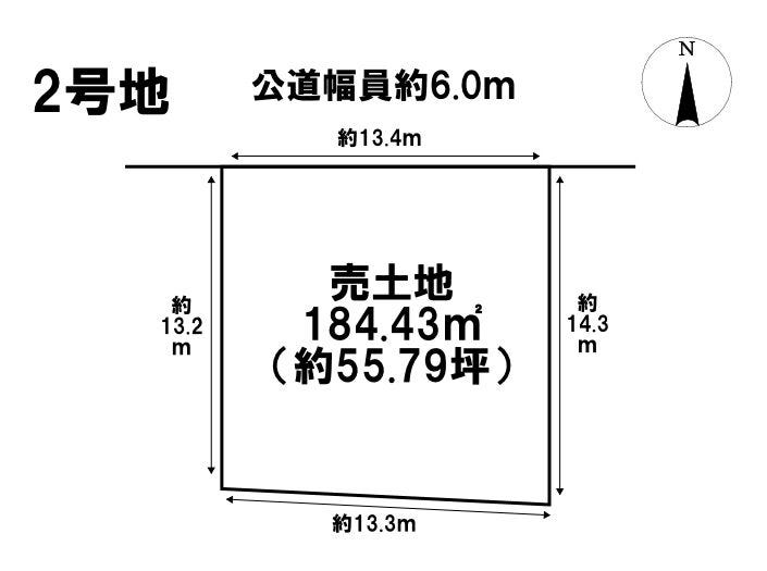 | 土地面積 | 公184.43㎡(55.79坪) | 接道 | 北側(公道)幅 約6.0m 間口 約13.41m |